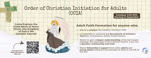 Register for OCIA (Order of Christian Initiation for Adults) with us.